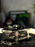 · تلفیق هنر و صنعت: ترکیب فلز برجسته ماکت با نور یکدست پلکسی، عمق و بعد خارقالعادهای به اثر بخشیده. نور از پشت، بهگونهای طراحی شده که گویی خودرو از دل تاریکی و مه بیرون میآید.