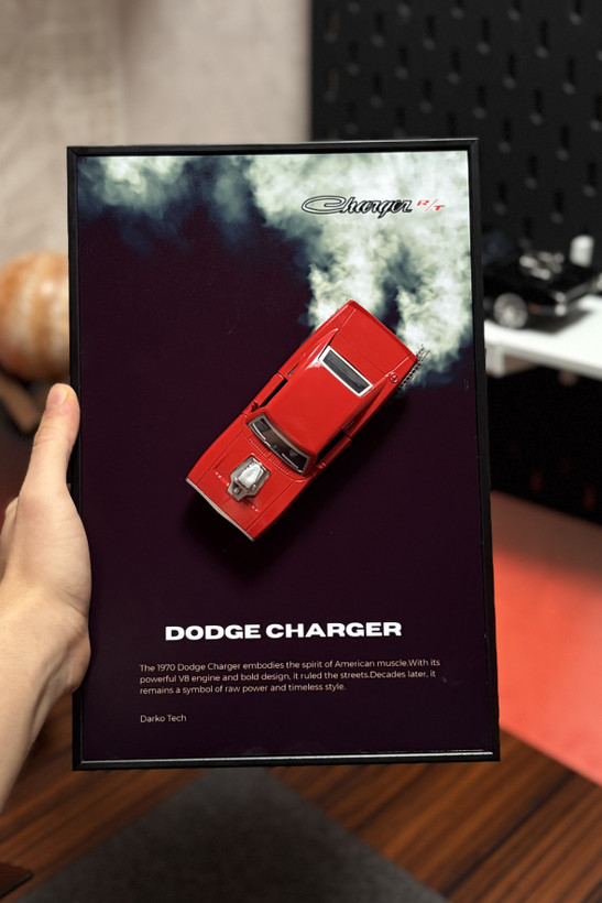 تابلو ماکت دوج چارجر برای کسانی طراحی شده که خودرو فقط یک وسیلهی رفتوآمد براشون نیست، بلکه بخشی از علاقه و شخصیتشونه. اولین چیزی که توجه رو جلب میکنه، حضور ماکت فلزی خودرو روی تابلوئه؛ جزئیاتی که باعث میشه حس واقعیتری نسبت به یک تصویر چاپی ساده منتقل بشه.