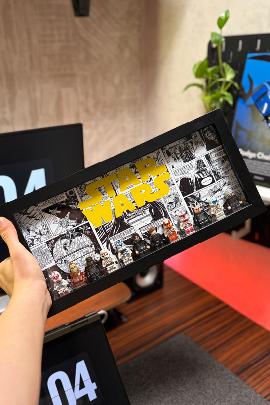 این فقط یه قاب نیست؛ یه تیکه از دنیای کهکشانی Star Warsـه که به صورت مینیاتوری جلوی چشمته. ترکیب رنگ زرد لوگو با بکگراند کمیکی، باعث میشه از فاصله دور هم کاملاً چشمگیر